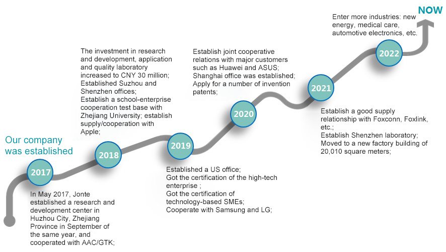 Zhejiang Jonte Chemicals Co., Ltd. was founded in 2017; with German and Japanese technical support, Zhejiang Jonte Chemicals Co., Ltd. is an enterprise specializing in the research, development and production of adhesives. There are many production lines of PUR, UV, anaerobic adhesive, epoxy adhesive, silica gel, AB adhesive, etc., and our products are being involved in many fields such as consumer electronics, automobile industry, medical treatment, new energy and so on.